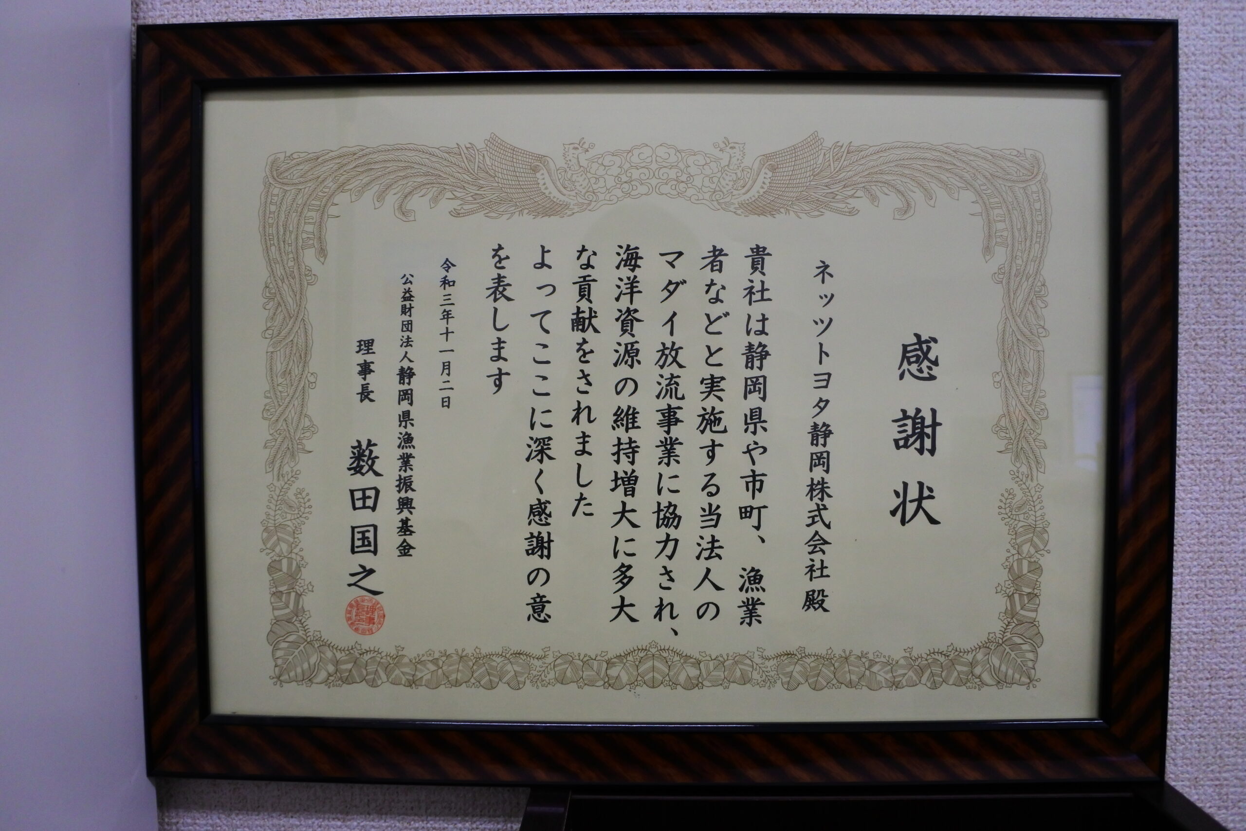 7月~9月の企画が終了し、マダイ稚魚放流協力金を静岡県漁業振興基金へお客様に代わってお届けしてまいりました。