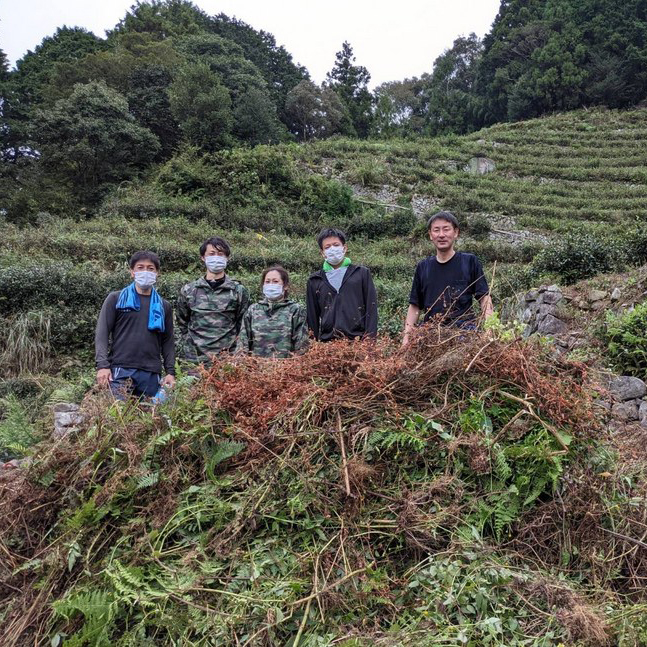 緊急事態宣言が解除され、静岡県の警戒レベルも3になり約3ヵ月振りの茶畑保全活動に行ってまいりました。前回7月の活動日は熱中症の危険もある猛暑日!今回は小雨降る中でしたが、活動するにはちょうど良い気温でした。