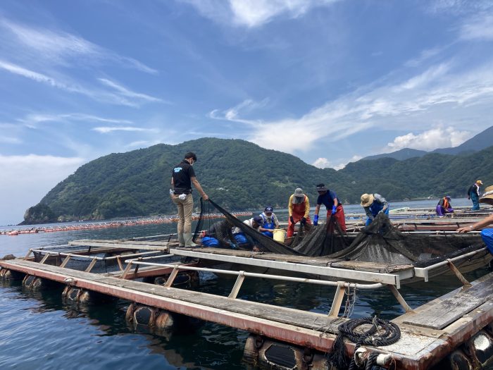 シーズンオフの期間はに網や生け簀の修繕をしたり、