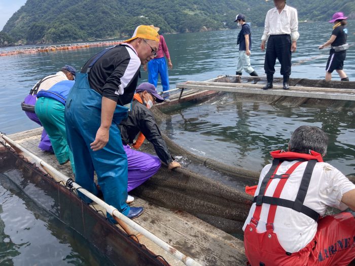・いけすの上での作業
