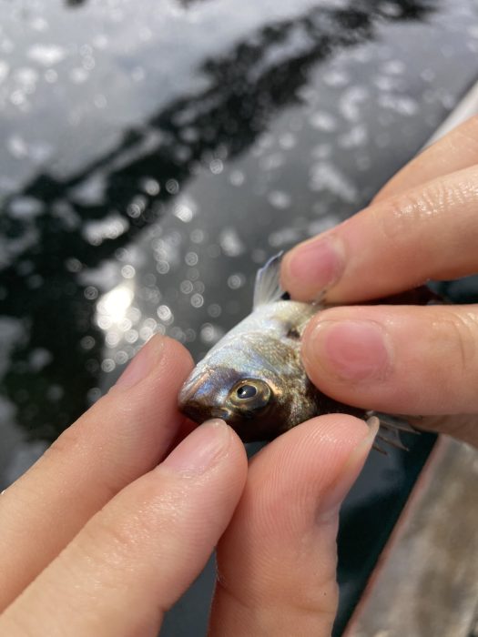 稚魚放流の前に、今年の稚魚の出来をチェックします。